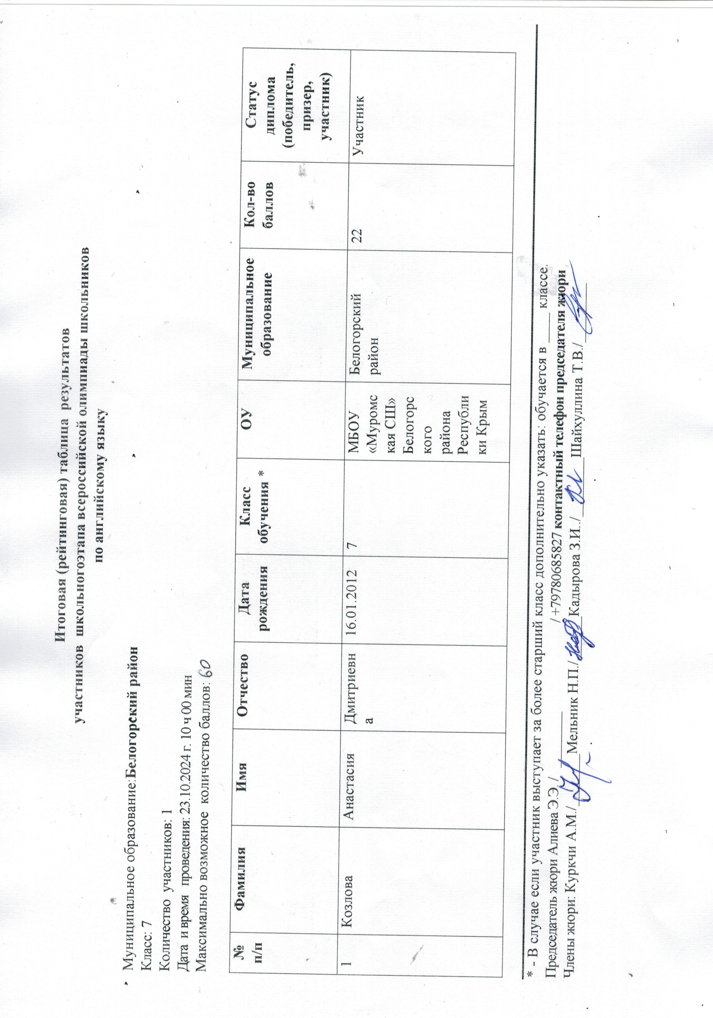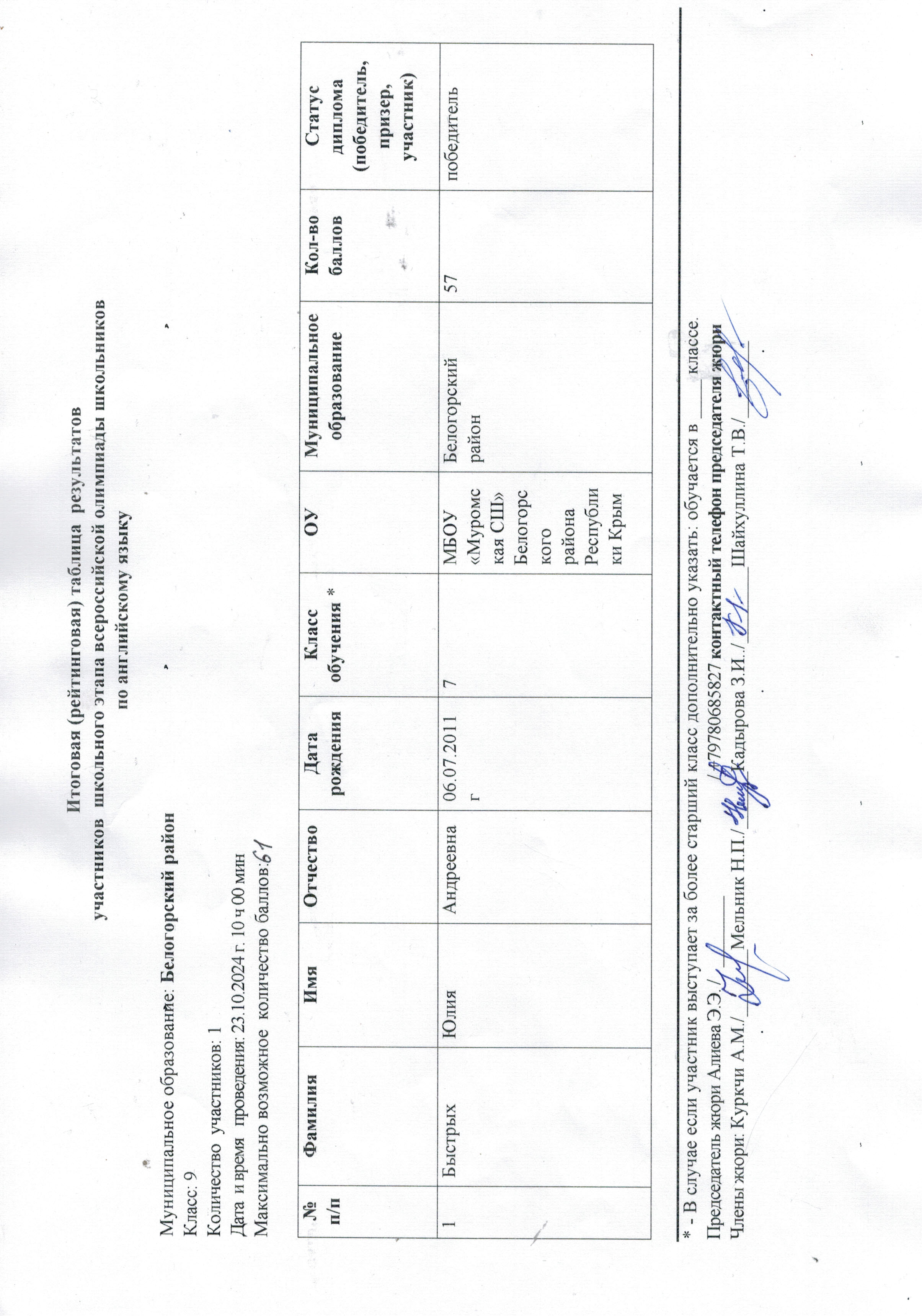 МБОУ «Муромская СШ» Белогорского района Республики Крым